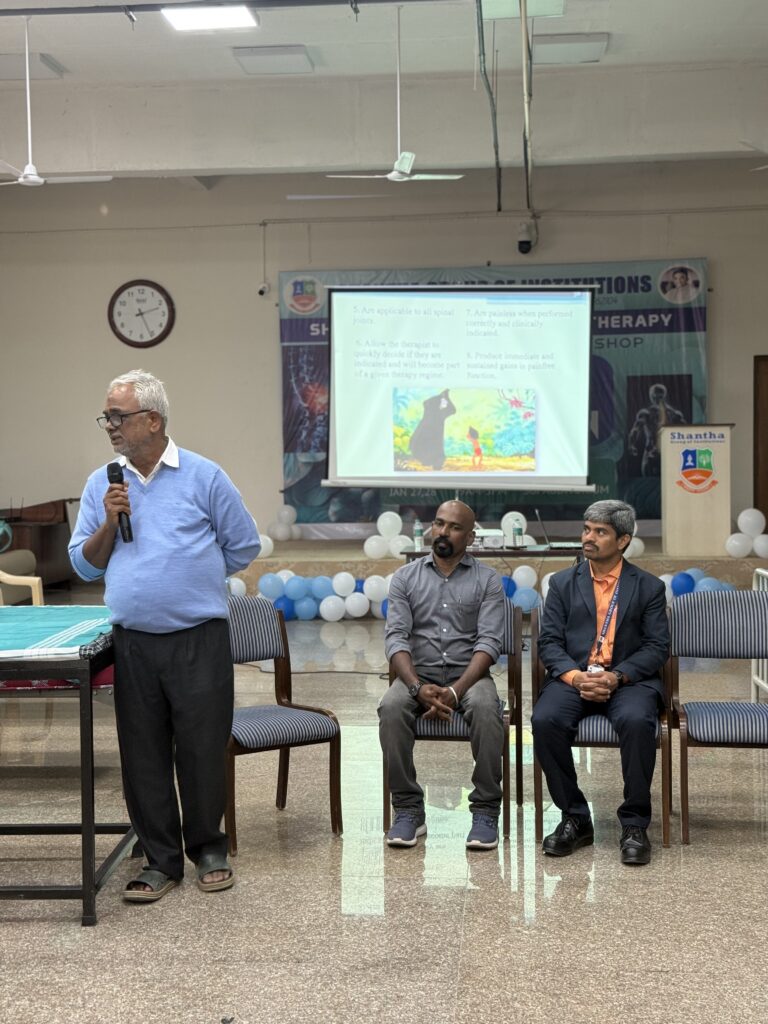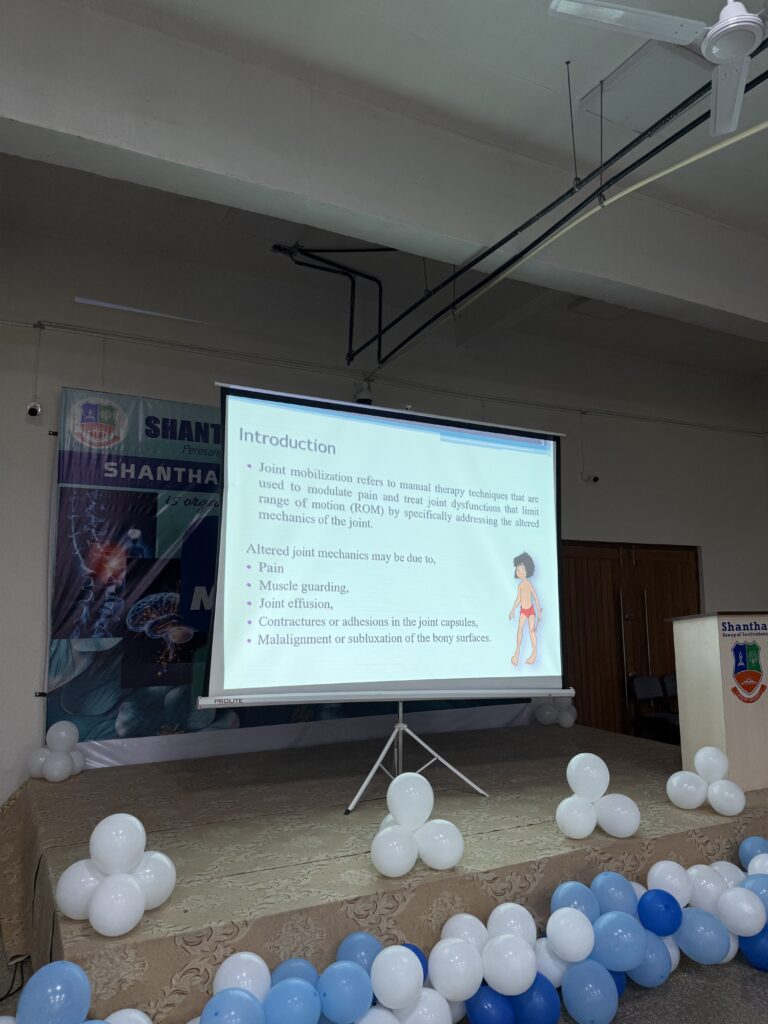 Shantha College of Physiotherapy, under the aegis of Shantha Group of Institutions, successfully organized a two-day intensive hands-on workshop on “Spinal and Peripheral Mobilization” on 27th and 28th January 2026 at the SGI Auditorium.
