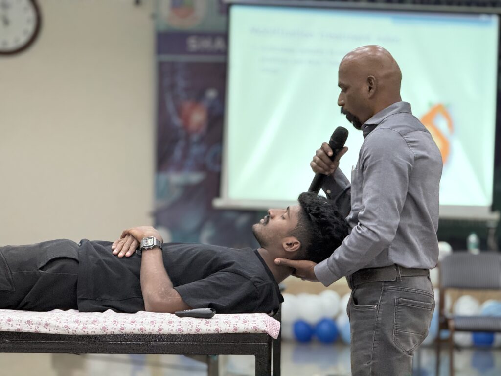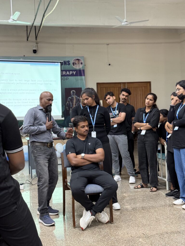 The program emphasized clinical assessment, clinical reasoning, safety considerations, and skill-based application of mobilization and manipulation techniques for both spinal and peripheral joints. The workshop witnessed enthusiastic participation from students and faculty